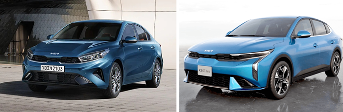 두 번째는 현재 해외에서 판매되는 K3의 디자인과 유사할 것이라는 의견인데요. 해외에서 판매되는 K3는 현재 국내에서 판매되는 K3와는 디자인이 완전 다른 느낌입니다. 따라서 이 K3를 바탕으로 패밀리 룩을 입힌 K4과 탄생할 것이다라는 의견입니다.